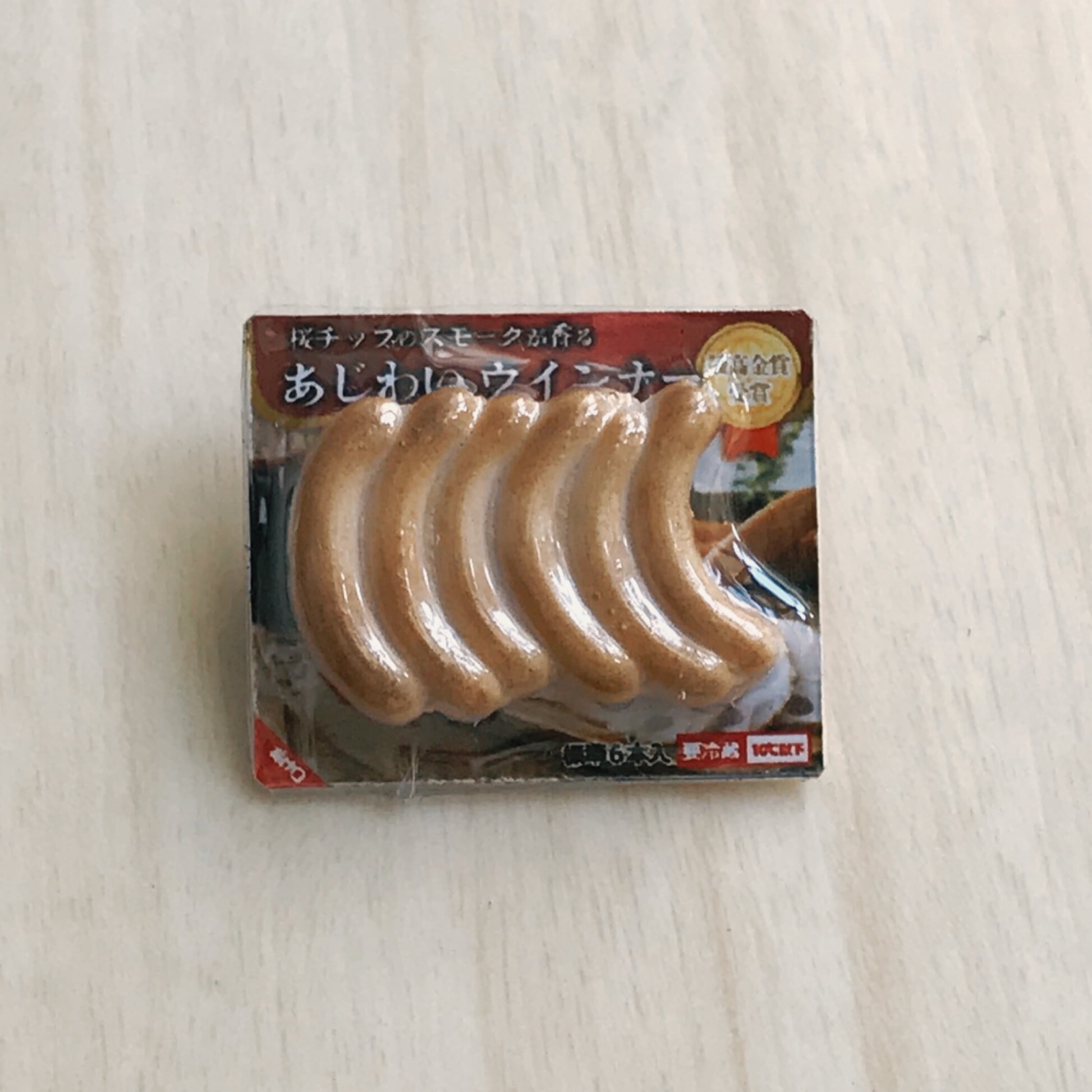 おいしいウインナーのブローチです。スモークが効いてます。お洋服のアクセントにいかがでしょう。